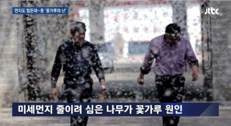 이번 JTBC 뉴스 보도에서 다룬 것처럼 중국 대도시, 특히 베이징에서 미세먼지를 줄이기 위해 나무를 많이 심었는데 오히려 지금 꽃가루 때문에 골치라고 합니다.