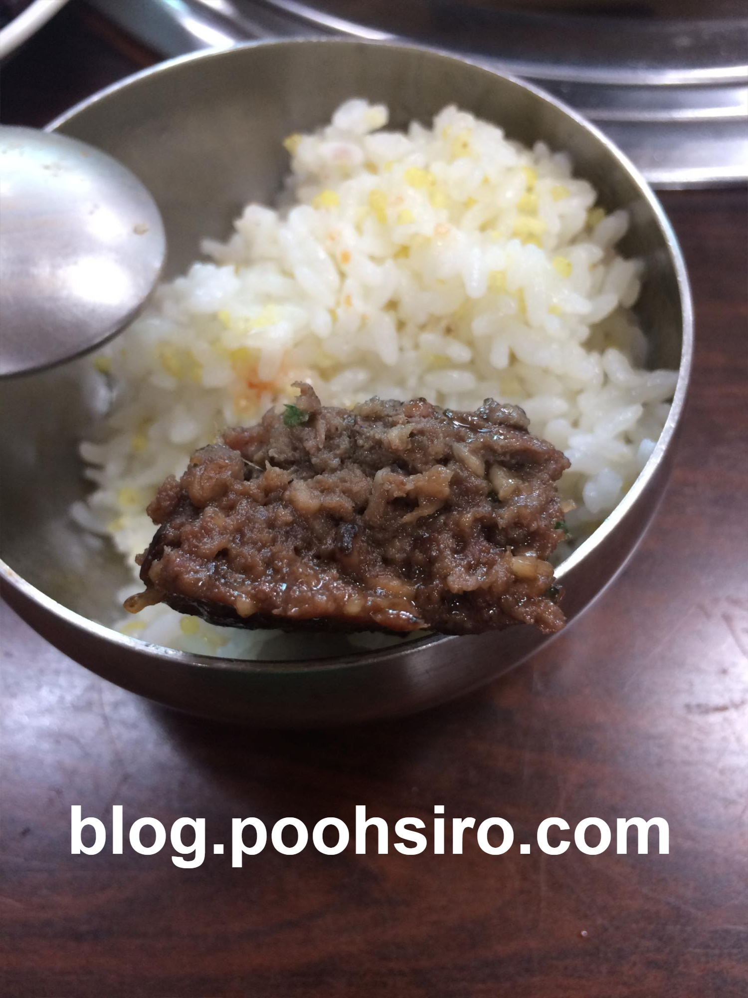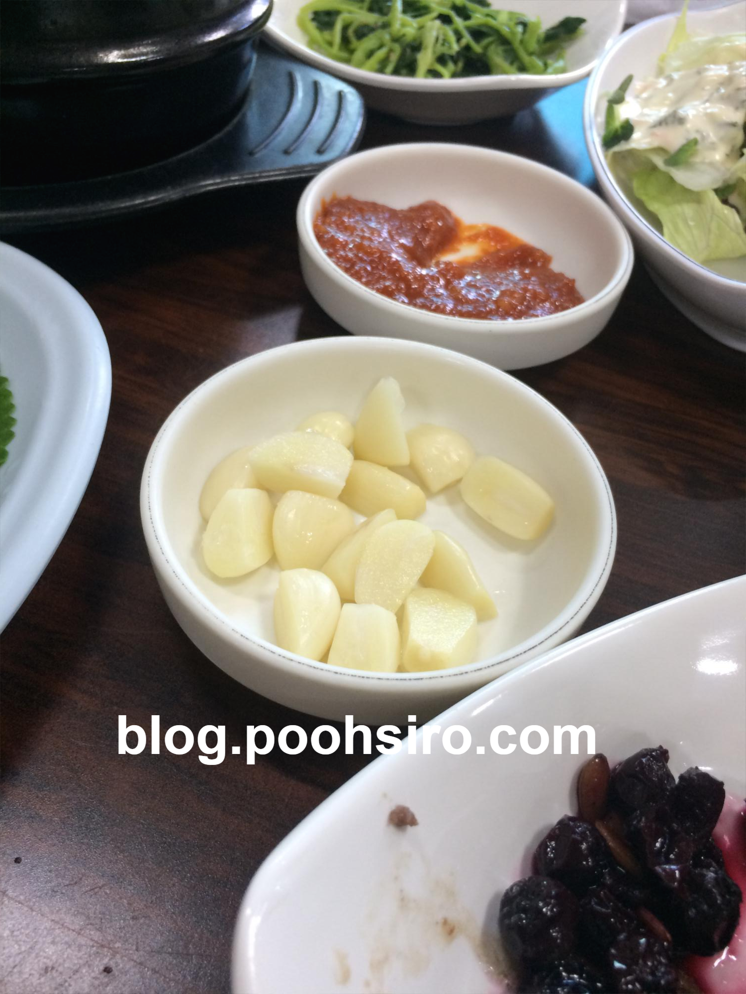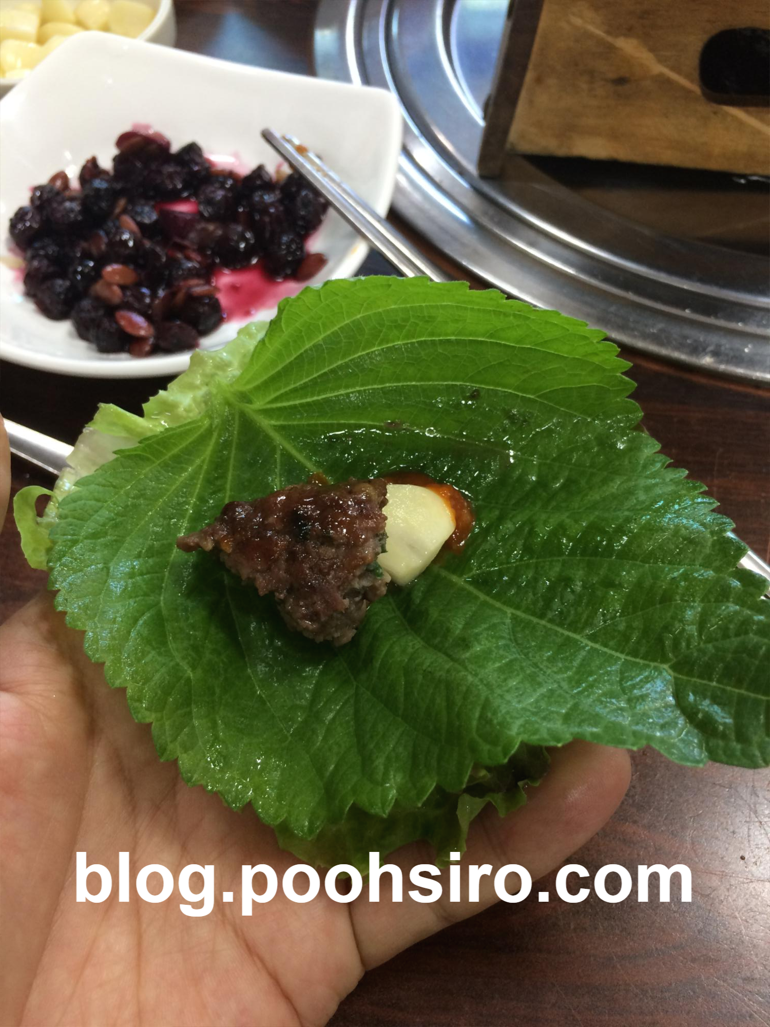 떡갈비+마늘 한 조각 + 된장 or 초고추장을 다시 얹어서 먹어보았습니다.