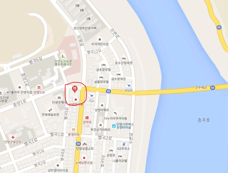 단양구경시장에서 충주호 방향으로 꺾어서