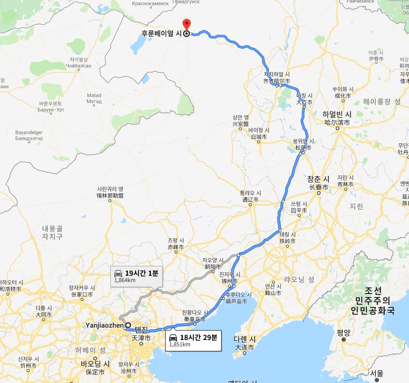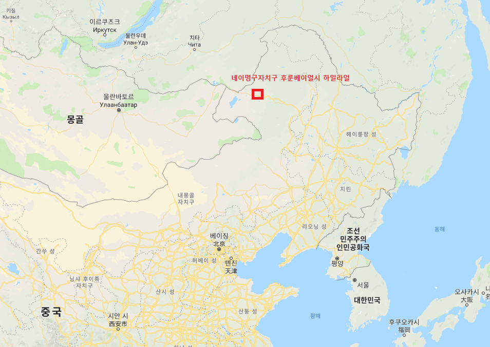 위의 이미지에서처럼 하일라얼은 중국의 최북단에 위치하고 있습니다.