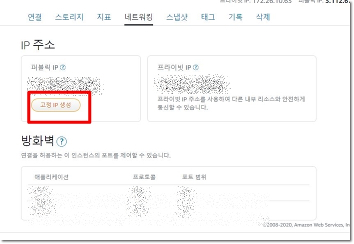 그럼 고정 ip 생성 버튼이 보일겁니다.