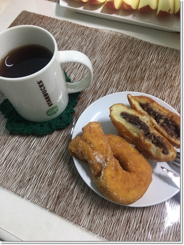 팥 도넛은 팥앙금에 견과류와 계피가 들어 있어서,