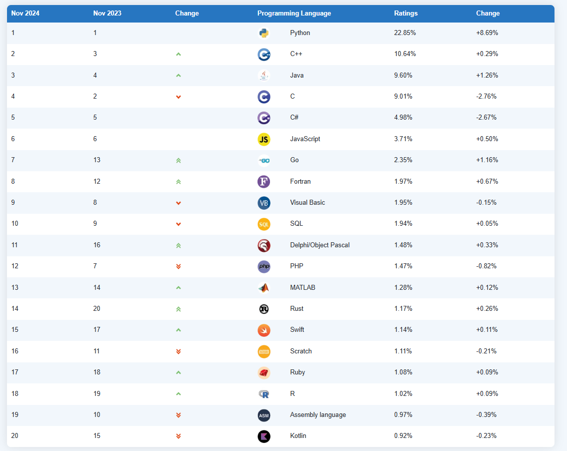 TIOBE Index for November 2024 - 프로그래밍 언어의 인기도 변화